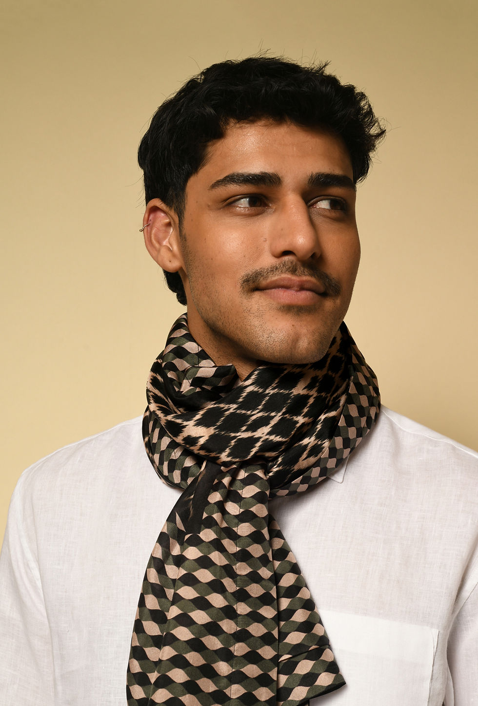 Our Bikaner kaftan is free-flowing, lounge wear, in pure habutai silk -- inspired by geometrics and ikat weaves in shades of deep red, black, and white. Whether worn at home, on slow travels, or styled for an evening gathering, it is a piece that carries both vibrancy and ease, designed to move across spaces with quiet confidence.