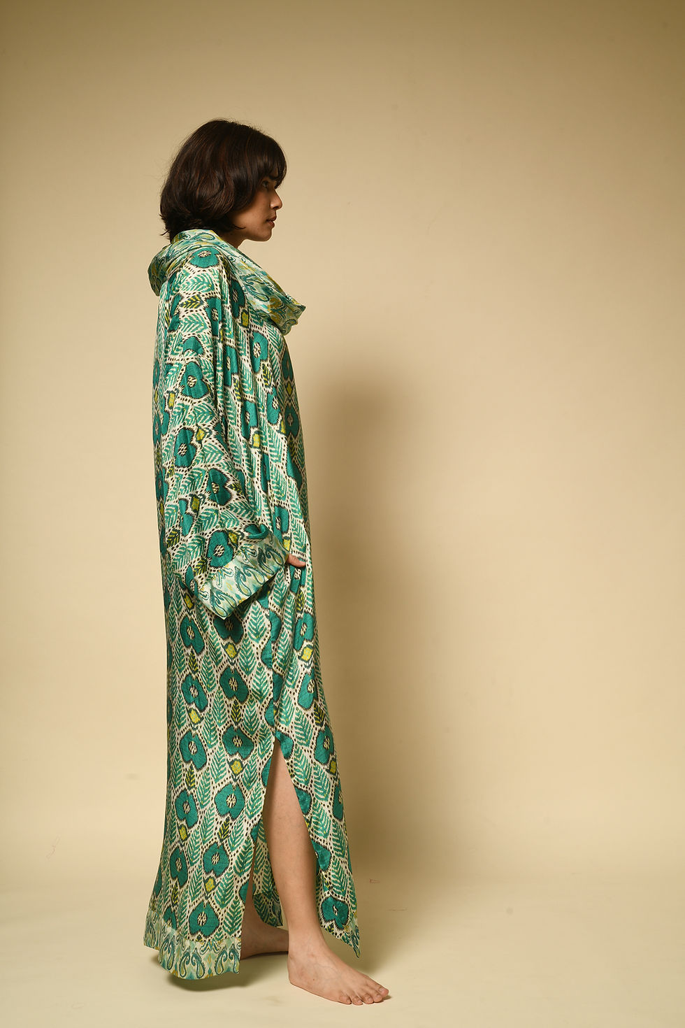 Style tip: Pair with a solid teal or gold blouse and statement earrings to complement the rich coral and let the hand-crafted details shine.